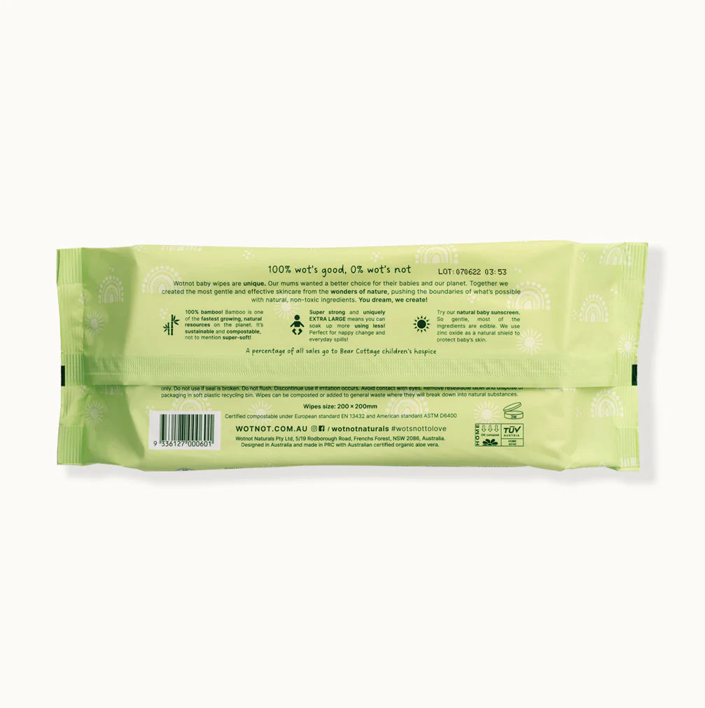 Created by Australian mums for delicate skin, Wotnot baby wipes are gentle on both the earth and baby's sensitive skin.