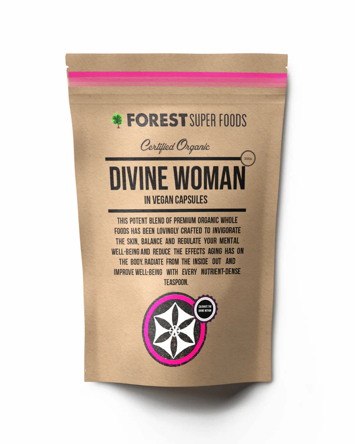 Capsules: Each vegan capsule contains 500mg of Divine Woman, 300 caps (1 month supply).