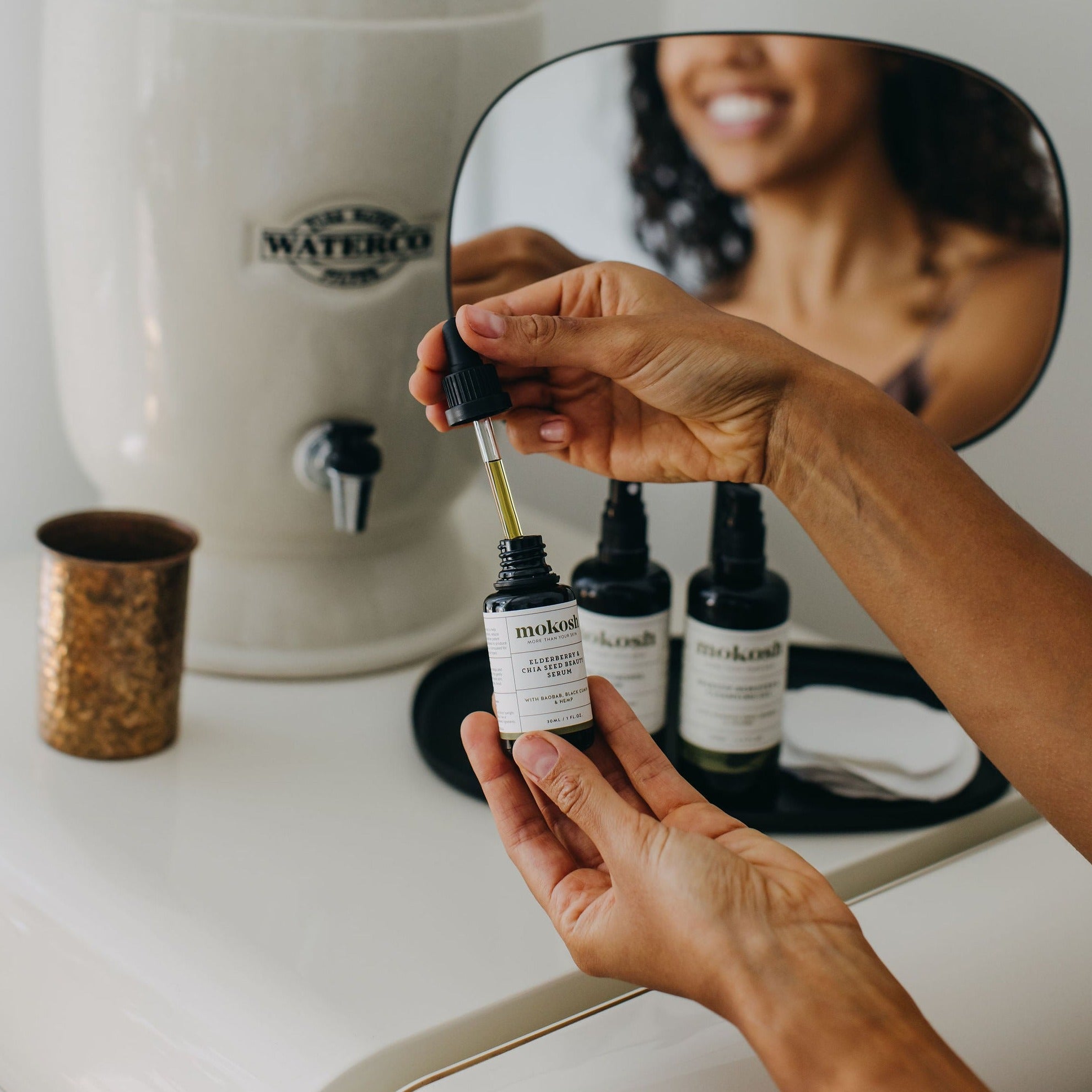 Dropper - the glass dropper can be recycled with your glass recycling. The plastic part can be collected and saved with other Mokosh jars and closures and sent back to us free of charge as part of our Container Return scheme. We will pay to have them recycled with Terracycle.