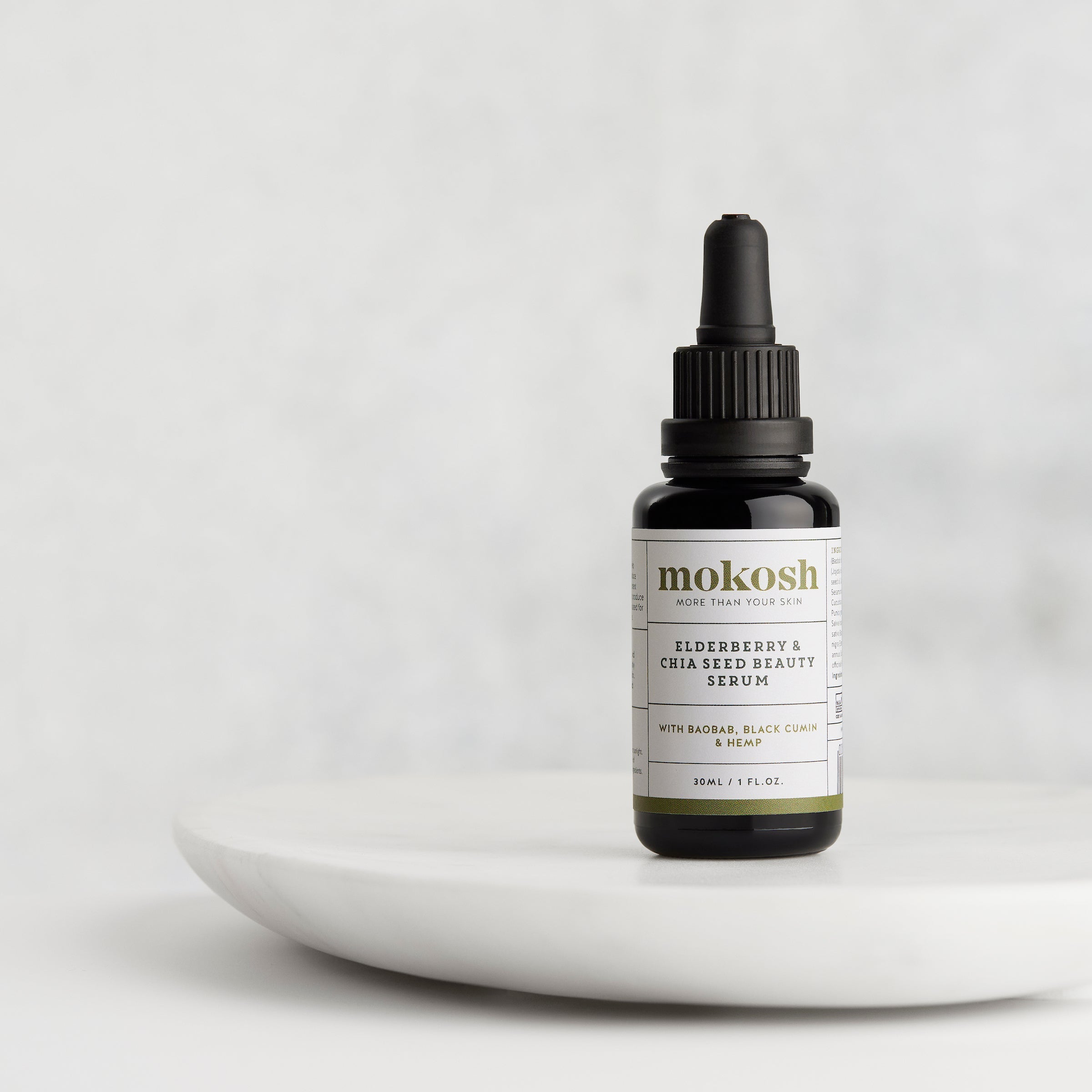 Adansonia digitata (Baobab) oil, Simmondsia chinensis (Jojoba) oil, Borago officinalis (Borage) seed oil, Cannabis sativa (Hemp) seed oil, Sesamum indicum (Sesame) seed oil, Cucurbita pepo (Pumpkin) seed oil, Punica granatum (Pomegranate) seed oil, Salvia hispanica (Chia) seed oil, Nigella sativa (Black cumin) seed oil, Sambucus nigra (Elderberry) seed oil, Helianthus annuus (Sunflower) and Rosmarinus officinalis (Rosemary) leaf extract.