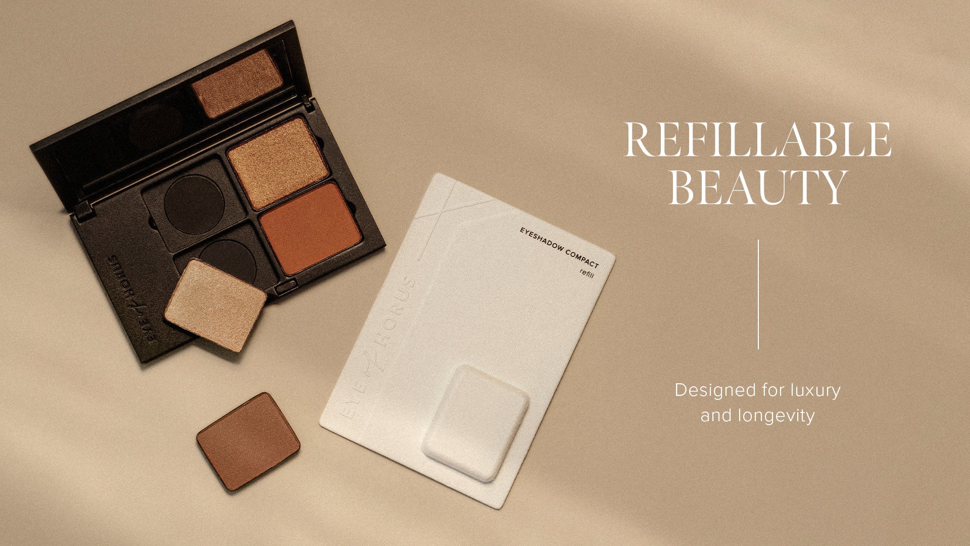 A luxury mineral eyeshadow compact that is 100% refillable & recyclable.