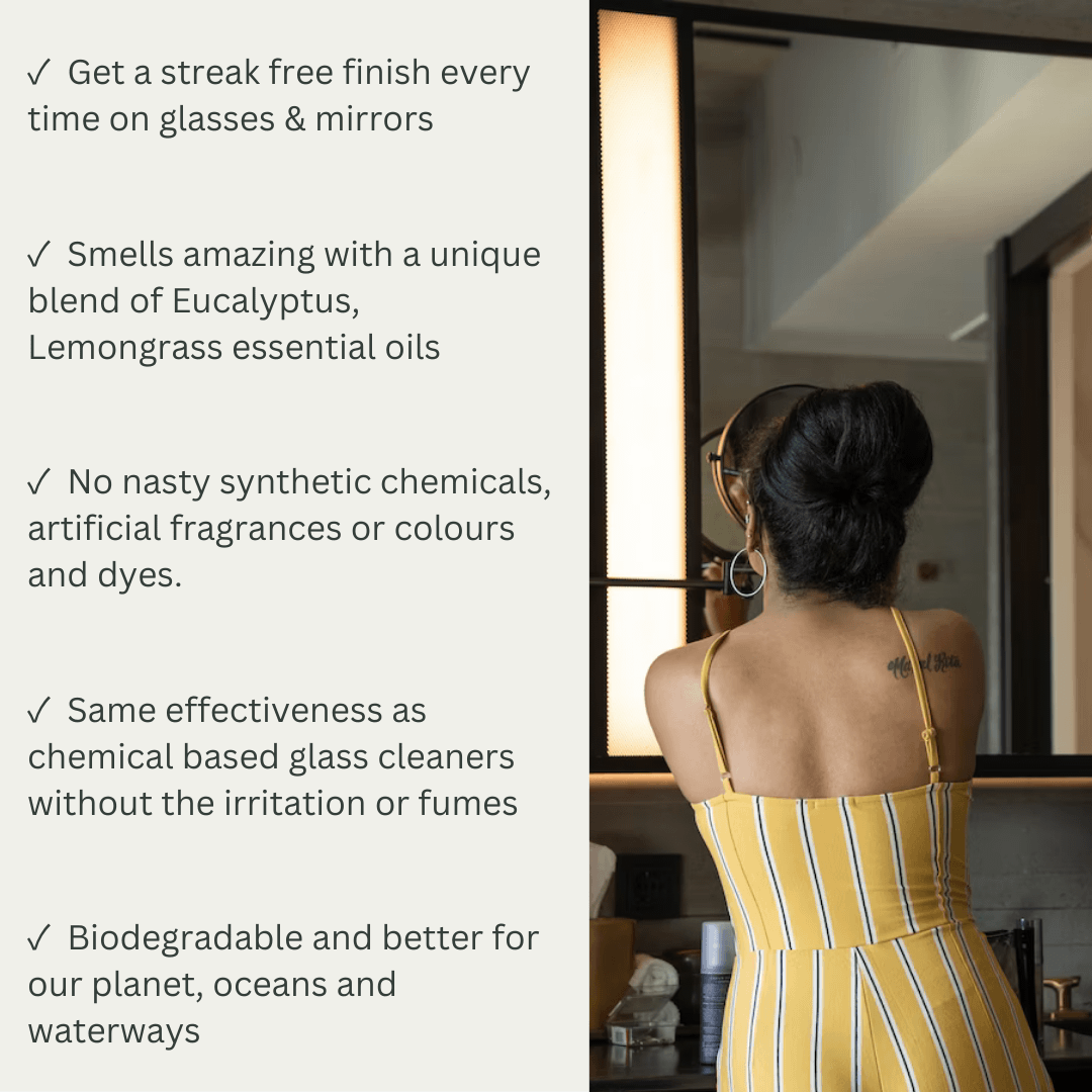 ✓ Bio ethanol gives your surfaces a streak free finish, made from sugarcane in Queensland, Australia