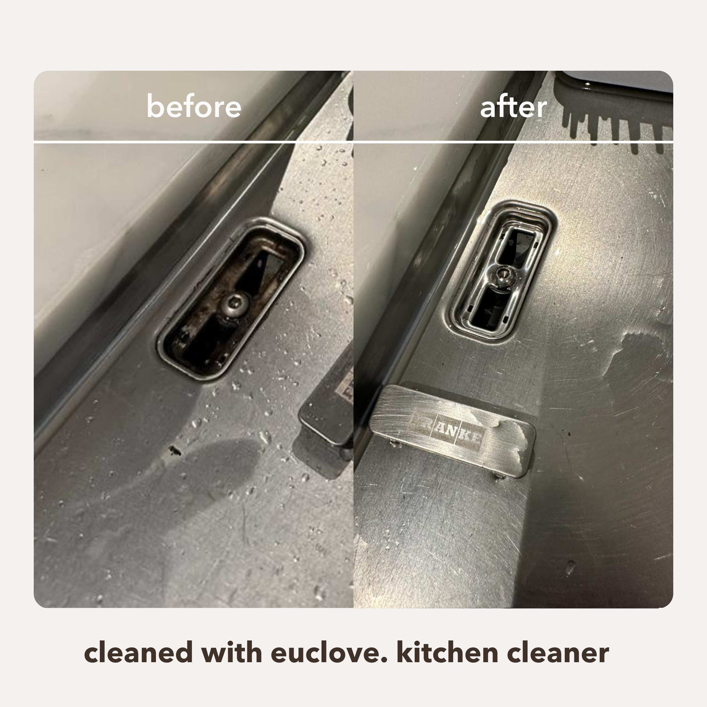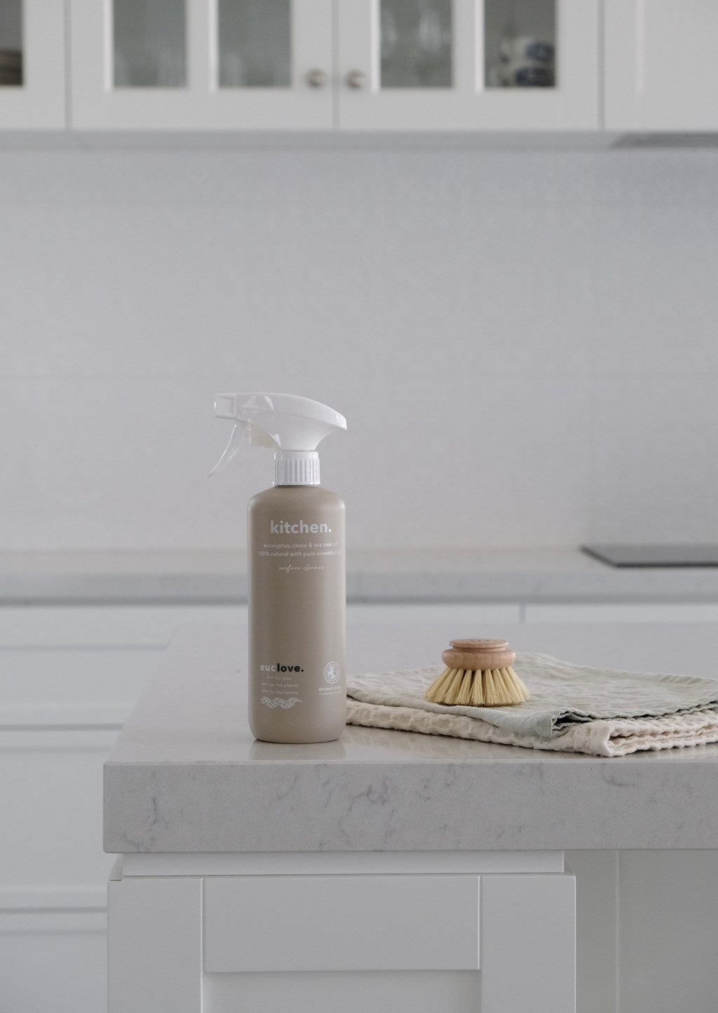 SPRAY: Spray the product directly onto kitchen surfaces and appliances and wipe thoroughly with a soft dry or slightly damp cloth.