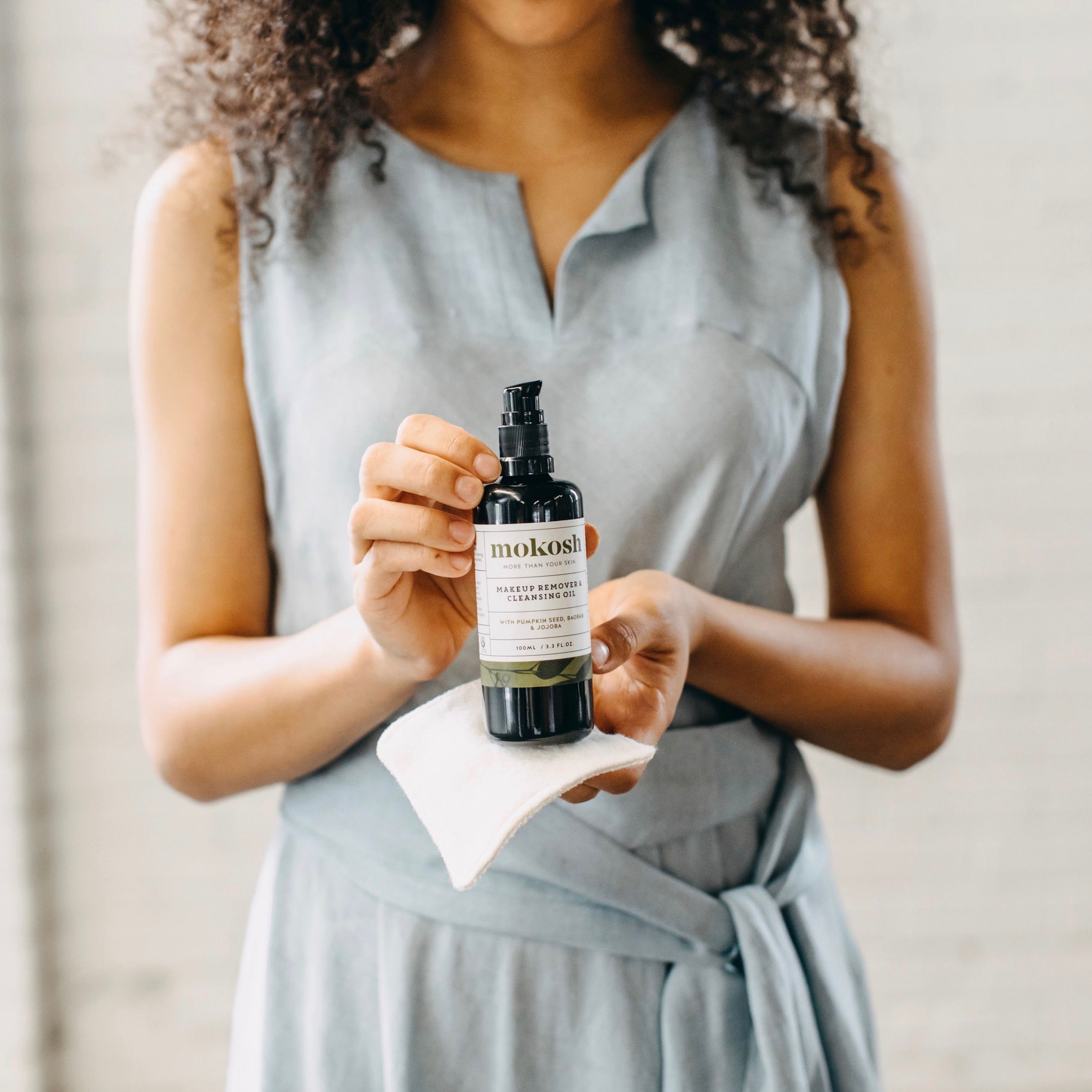 For oil cleansing, use several full pumps of product and gently massage over the face for a few minutes, then remove by pressing a warm water-rinsed flannel onto the skin. Rinse the flannel in warm water and repeat until the oil is present at a comfortable level.