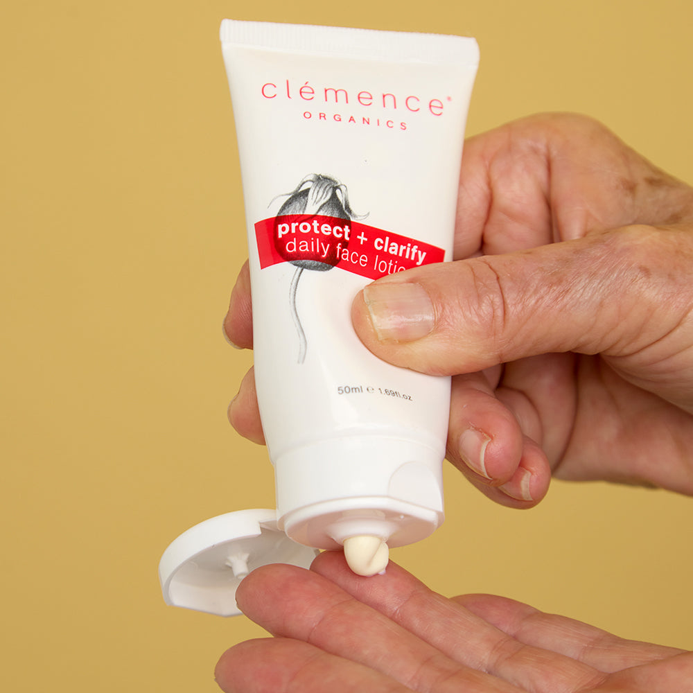 Protect + Clarify Daily Face Lotion is a potent moisturiser that calms, hydrates and protects to an SPF 15 level. Clémence Organics’ first sun-protective moisturiser is rich in zinc oxide that glides on invisibly to create a barrier against harsh UV rays. The added protective effects of carotenoid-rich Karanga Seed Oil and microalgal elements create multi-level sun protection that repairs and nourishes summer skin. Protect + Clarify Daily Face Lotion is ideal for those who spend most of their day in the office/indoors but are constantly being told they need some level of sun protection, even if they only spend 15-30 minutes in the sun.