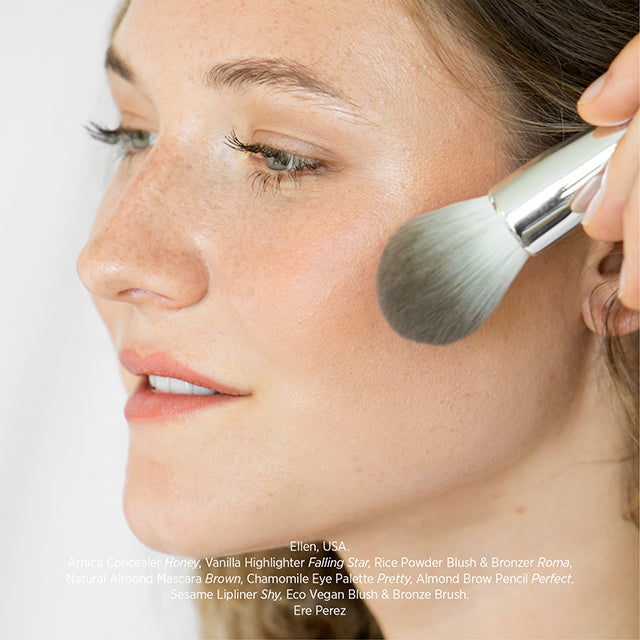 Inspired by the coastal charm of Australia's most iconic beach, Rice Powder Blush – Bondi embodies effortless ocean-kissed cheeks with a stunning blend of matte mandarin & coral pink glimmer, for a soft-focus multidimensional, vegan natural blush. A natural pop of colour for cheeks, and add radiance to everyday skin. Made with non-GMO anti-inflammatory rice starch to hydrate and sooth inflamed skin. Plus, acne-safe sunflower oil, and added vitamin E and chamomile for calming and brightening benefits. Redefine beauty while honouring our planet, all Rice Powder Blush & Bronzers comes in 100% refillable aluminium packaging. An eco-friendly blush that's as kind to the Earth as it is to your skin.