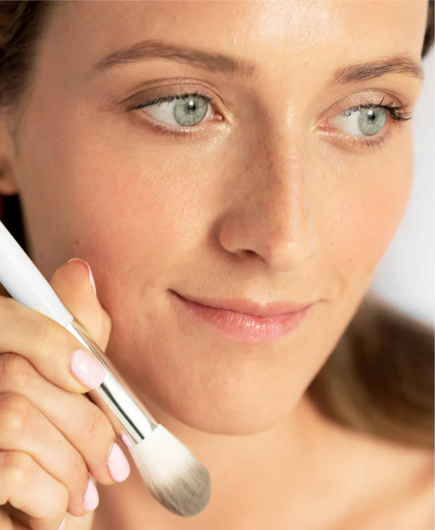 1. Swirl the all-beauty brush on the colour, tap excess and sweep across the apple of the cheeks and cheek bones for a natural flush of colour.