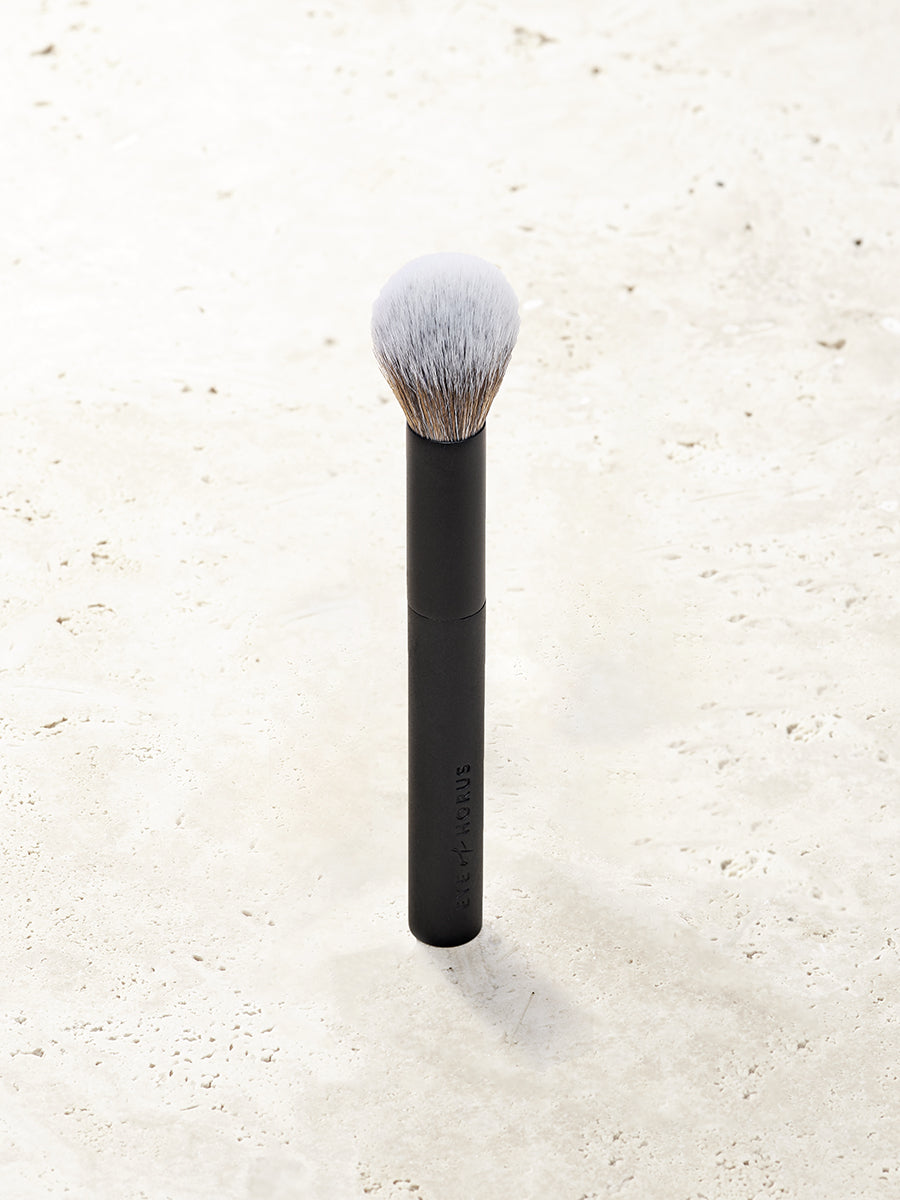 Enhance and sculpt your features with the Eye of Horus Vegan Contour Brush. Hand-crafted with premium synthetic fibres for a strong colour payoff and seamless application of blush, bronzer and highlighter.