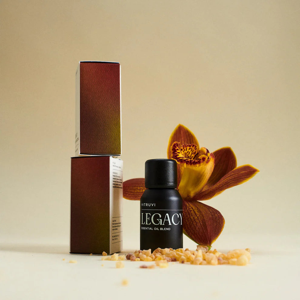 Legacy is grounding and balanced. With top notes of Rose and Bergamot and bottom notes of Frankincense and Cedarwood, it smells like the warmest welcome. Return to your surroundings and return to yourself.