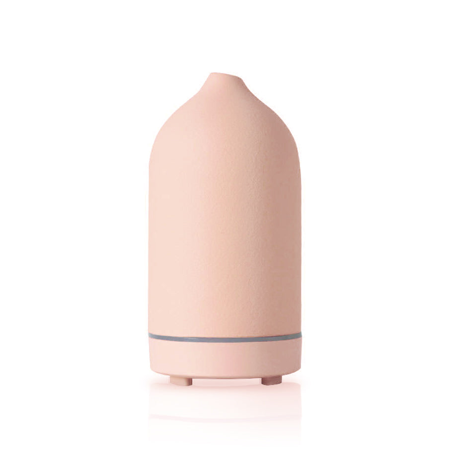 - A beautifully hand-crafted stone essential oils diffuser which uses ultrasonic vibrations of water to gently vaporise your oils into cool aromatic mists. The chic design and matte soft peachy pink finish make this a beautiful addition to your home decor.