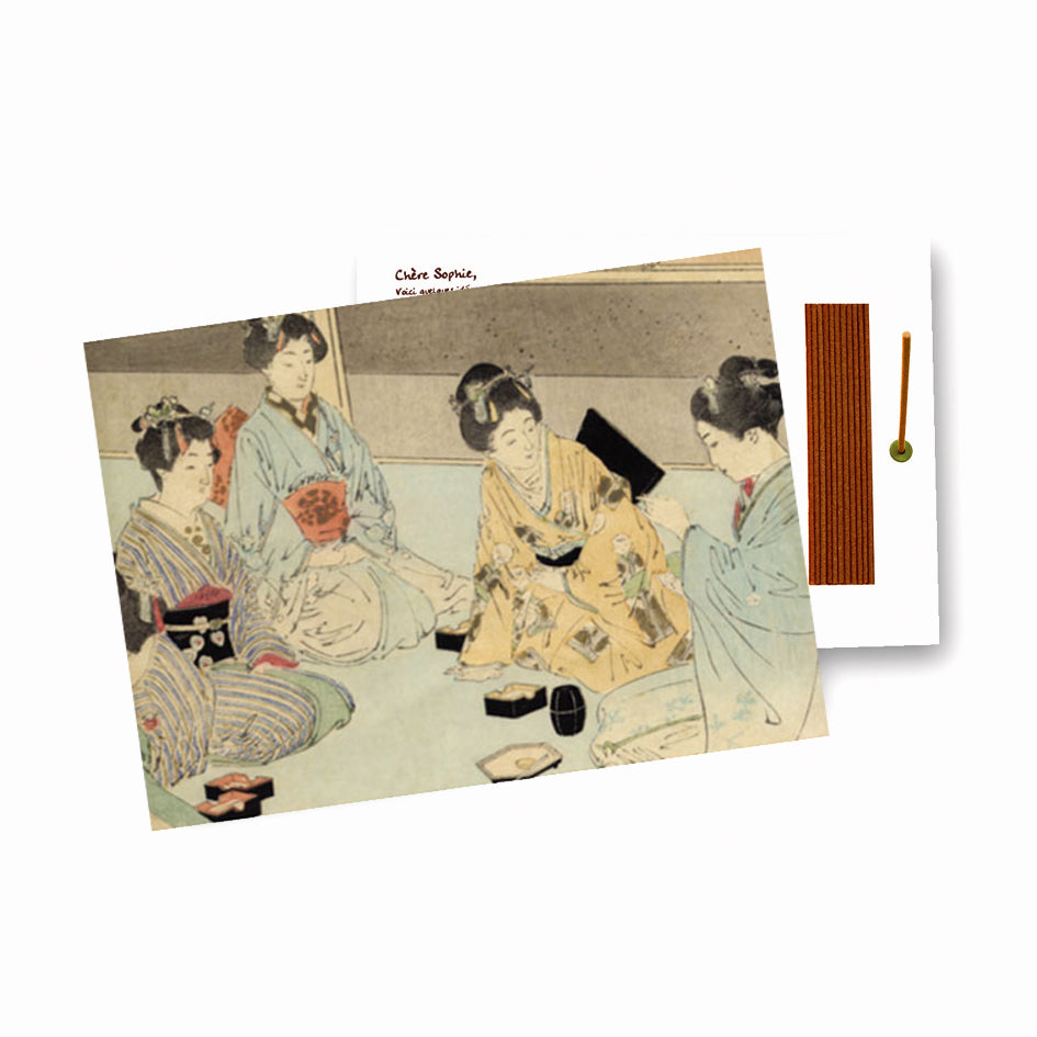 These beautiful and functional greetings cards contain 10 sticks of Japanese incense, a built-in incense-holder and an envelope.