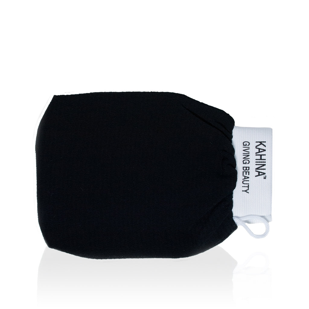 After rinsing, scrub the skin heavily in a circular motion with the kessa exfoliating mitt. Multitask by applying a hair mask and/or our Antioxidant Mask to face while you wait for the Beldi Soap to penetrate.