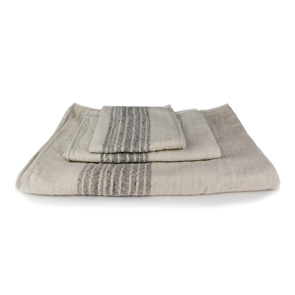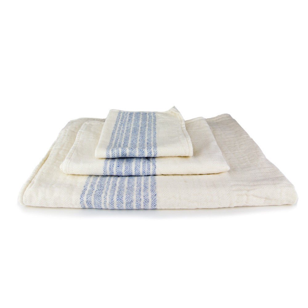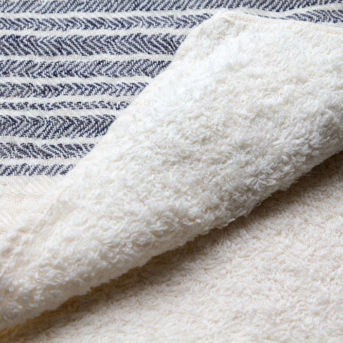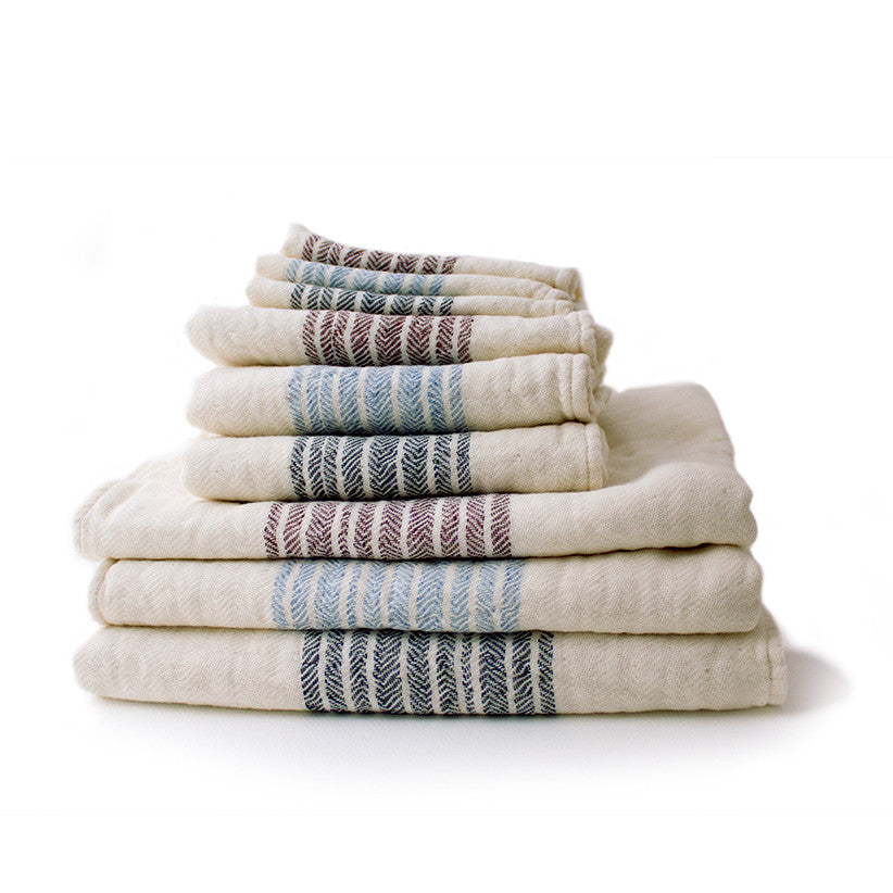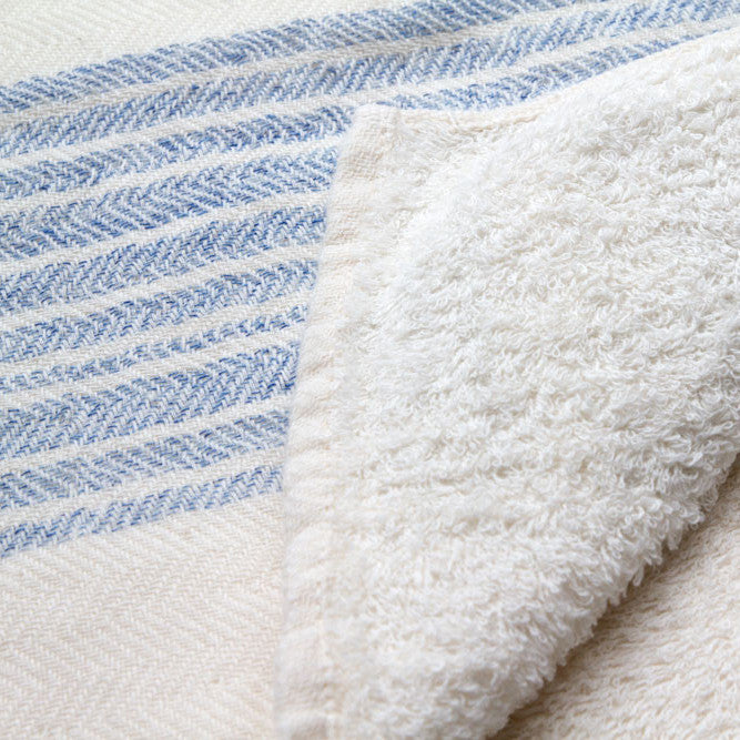 These luxurious towels are woven with a very delicate chevron pattern and a striped border on one end. Each towel has two sides: an ultra-soft cotton weave and a looped cotton terrycloth pile. The exceptional design and care in processing the cotton makes Flax Line towels highly absorbent, lightweight, fast-drying and environmentally friendly.KONTEX towels are woven at gentle speeds on an old fashioned weaving machine. This manufacturing process brings out the natural softness of the materials and makes these towels as soft and silky as cashmere, yet durable enough for everyday use.