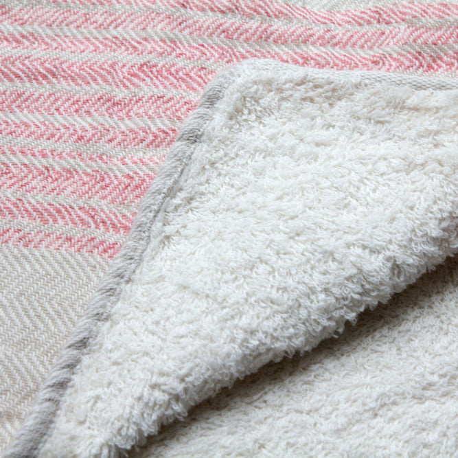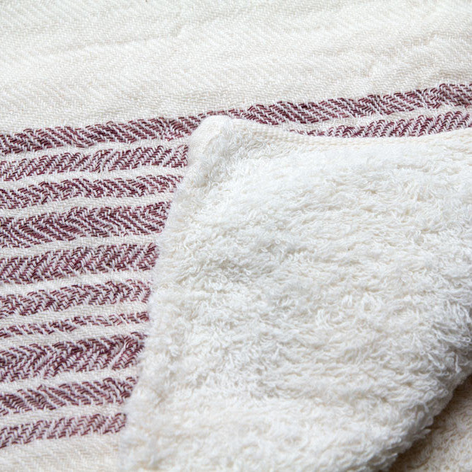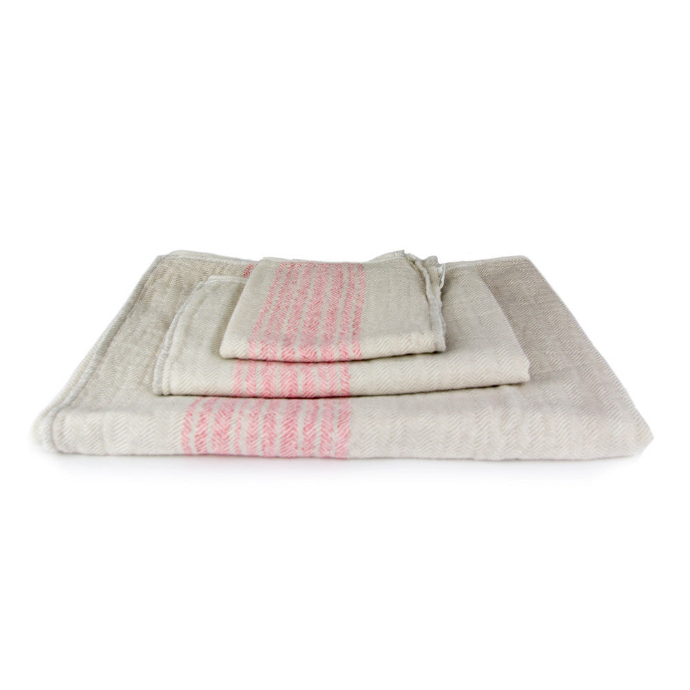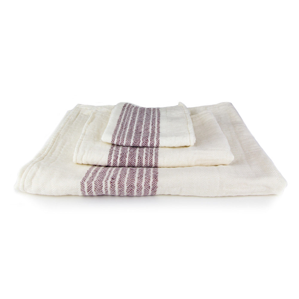 These luxurious towels are woven with a very delicate chevron pattern and a striped border on one end. Each towel has two sides: an ultra-soft cotton weave and a looped cotton terrycloth pile. The exceptional design and care in processing the cotton makes Flax Line towels highly absorbent, lightweight, fast-drying and environmentally friendly.KONTEX towels are woven at gentle speeds on an old fashioned weaving machine. This manufacturing process brings out the natural softness of the materials and makes these towels as soft and silky as cashmere, yet durable enough for everyday use.