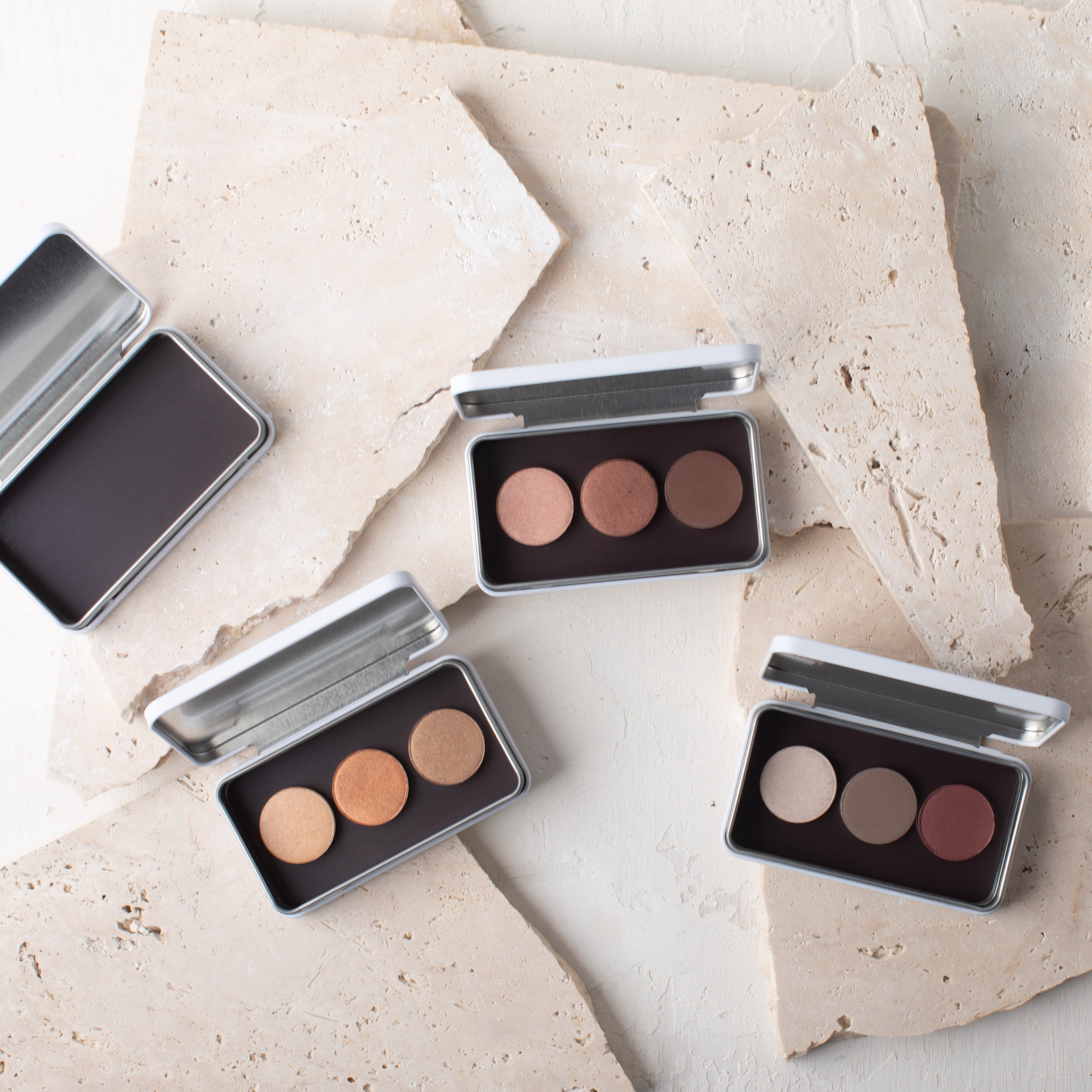 This set comes in an eco-style refillable palette of 3 shades with individual refills available to replace your most used shades allowing convenience for the traveling Goddess.