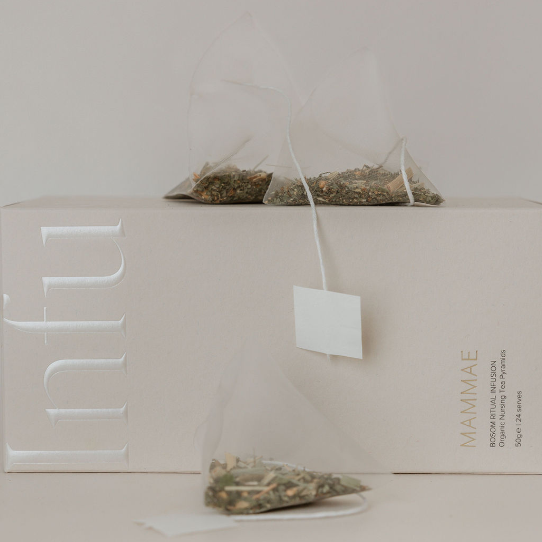 The Bosom Ritual Infusion Nursing Tea Pyramids deliver an elevated dose of milk-nourishing hydration, expertly formulated to support breast milk production, ease digestion, and nurture maternal well-being throughout the postpartum journey.
