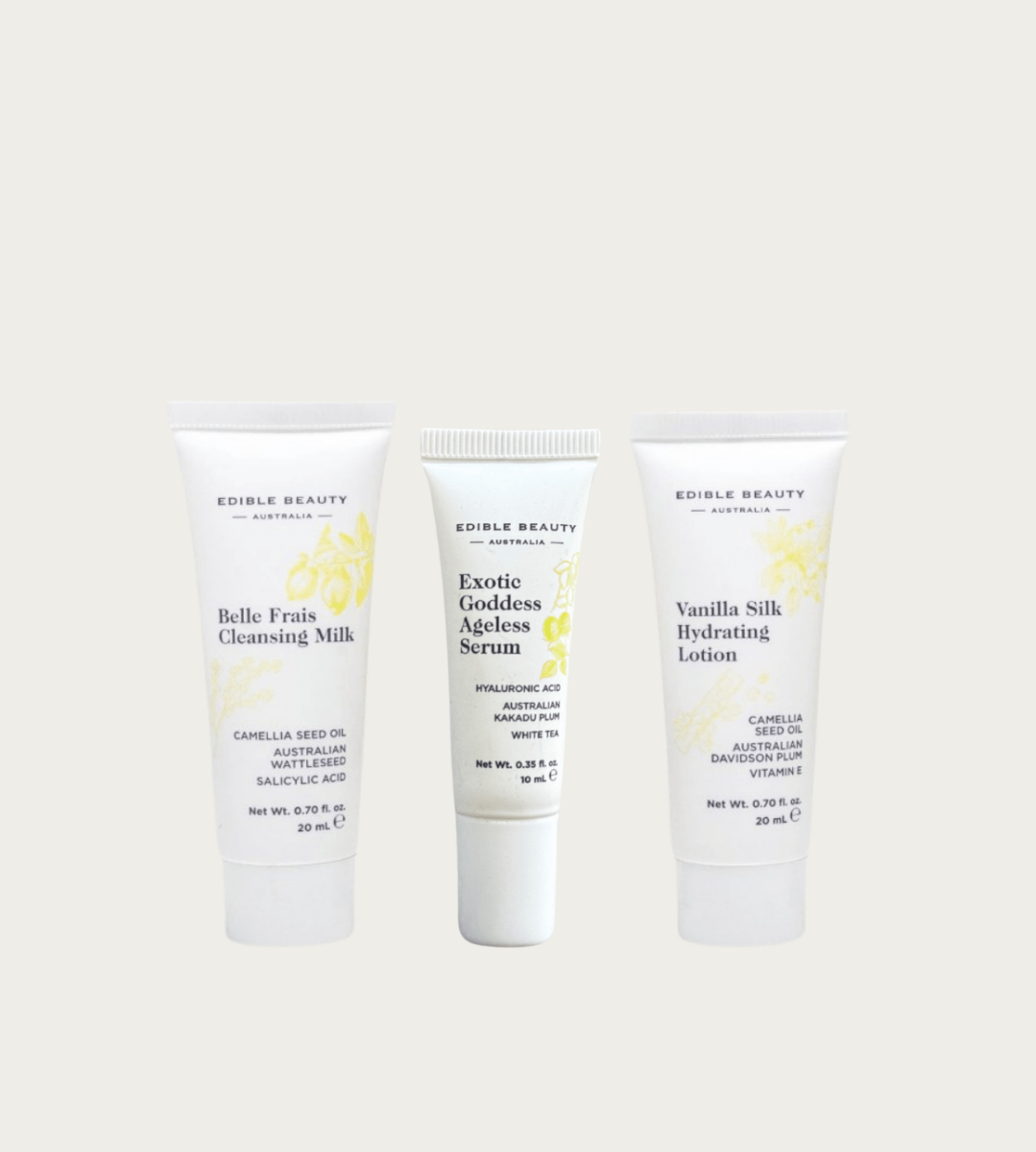 Curated for the Edible Beauty Newbie wanting a simple yet highly efficacious skincare regime but is not quite ready to commit, this sampler bundle contains our best-selling: