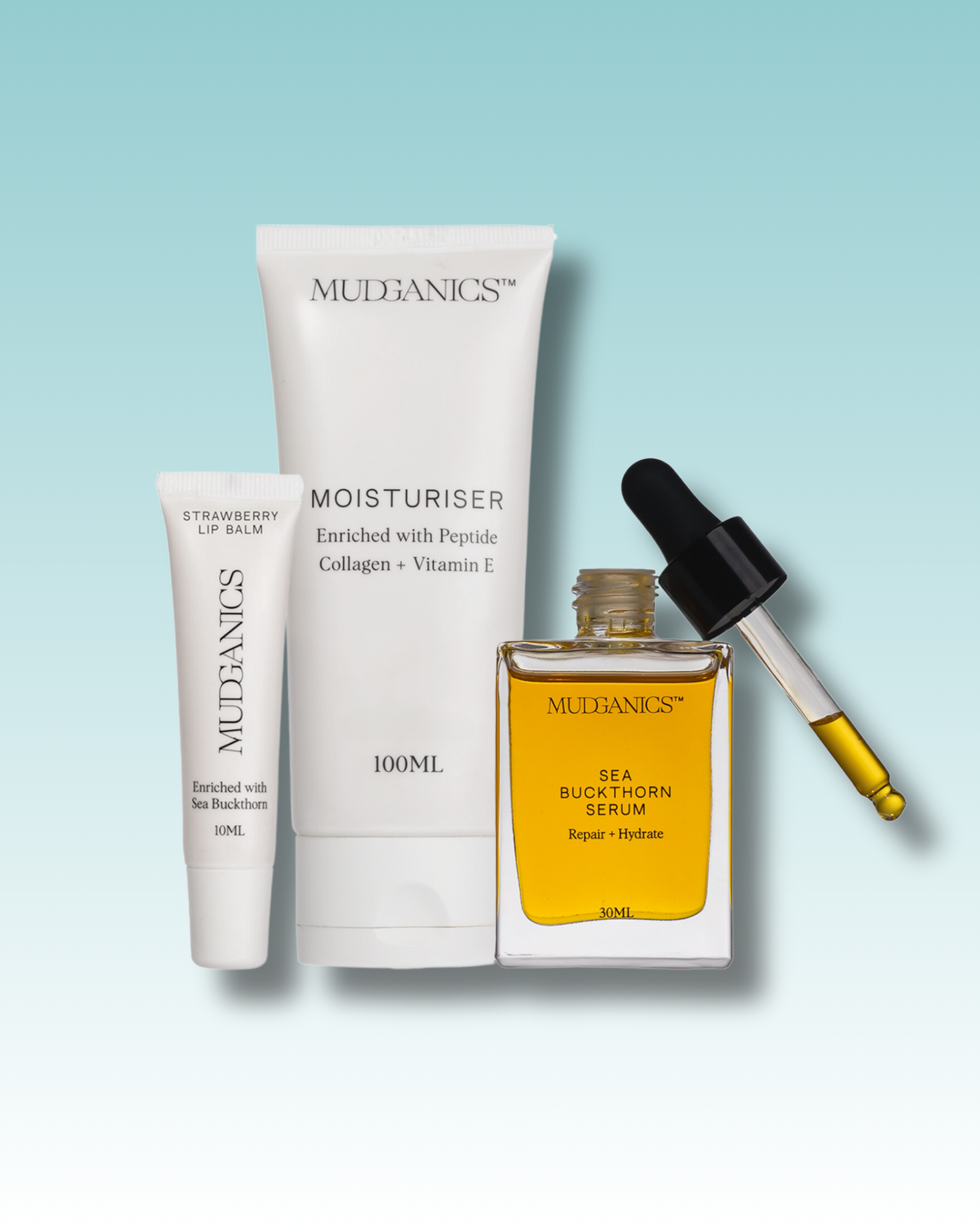 The Ultra Hydrate Bundle is your go-to bundle for hydrated, healthy, and glowing skin. Featuring our Peptide Collagen Moisturiser, 30ml Sea Buckthorn Serum, and Sea Buckthorn Lip Balm, this trio harnesses the power of Sea Buckthorn in every product. Known for its rich concentration of omega fatty acids, antioxidants, and vitamins, Sea Buckthorn promotes deep hydration, enhances collagen production, and supports skin repair—giving you a radiant complexion and nourished lips every day.
