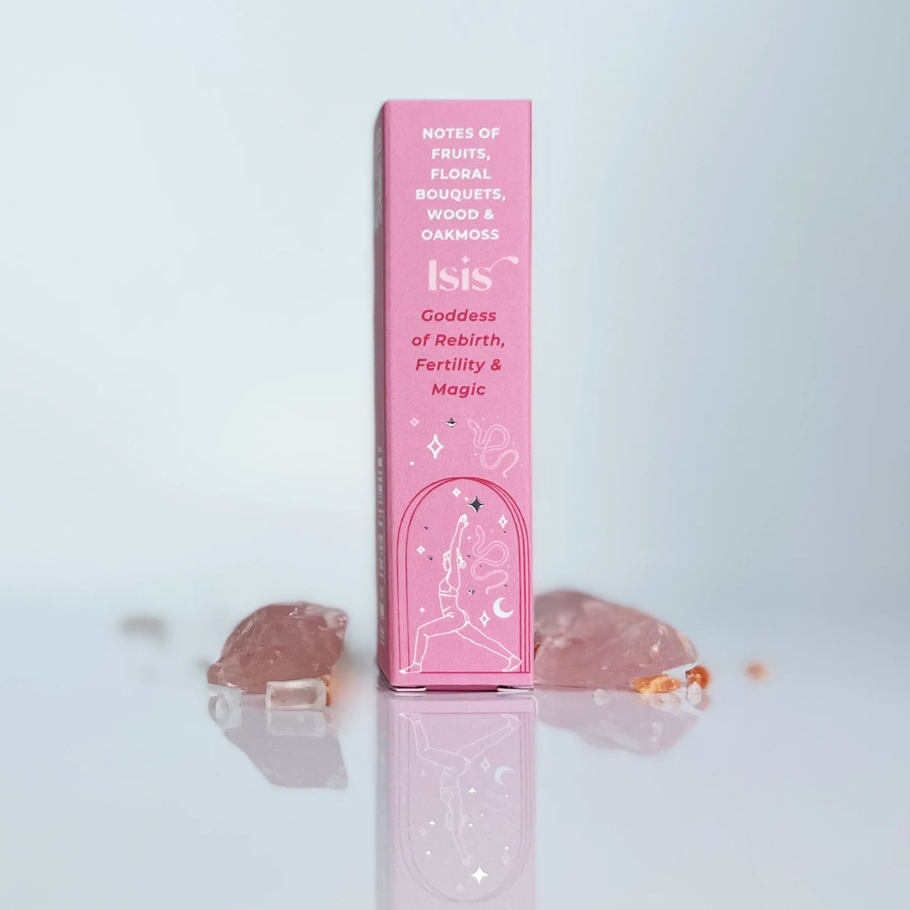 Isis embodies the strengths of the feminine- the capacity to feel deeply about relationships, the act of creation, and the source of sustenance and protection. May you receive the blessings of femininity and fertility by wearing the scent of Isis. Our newest fragrance has brought a breath of fresh air to our group with notes of essential rose oil and white floral.