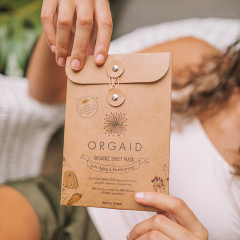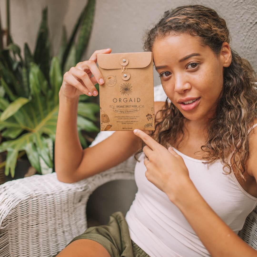 No spa? No problem. On clean skin, apply an organic sheet mask 1-2x per week. Leave on 20-30 mins to give your skin an at-home spa treatment.