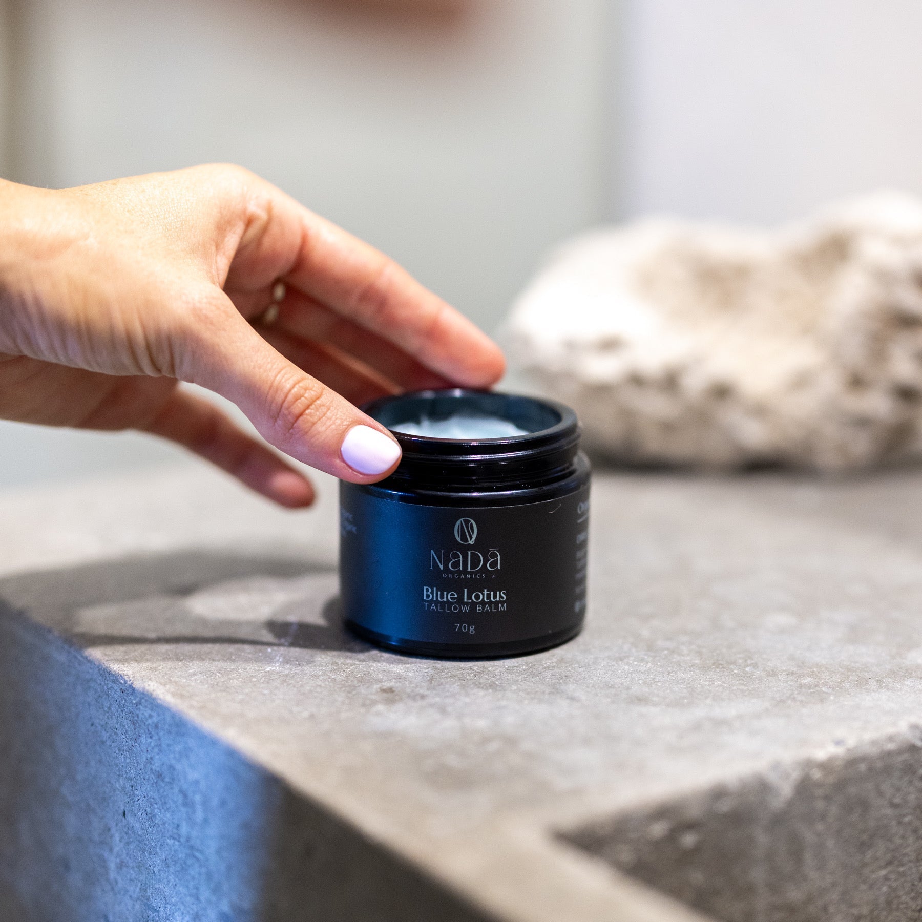 Experience the deep nourishment of our Blue Lotus Tallow Balm. Our balm is handcrafted in small batches with a luxurious blend of 100% organic skin-loving ingredients.
