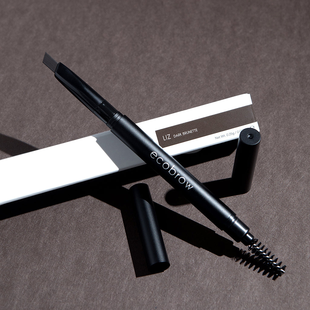 Using the EcoBrow Defining Brush, lightly dab the angle side of the brush with wax and apply onto brows using short hair-like strokes. Apply more as needed. Then use the spooley side to brush brows upward and blend wax perfectly.