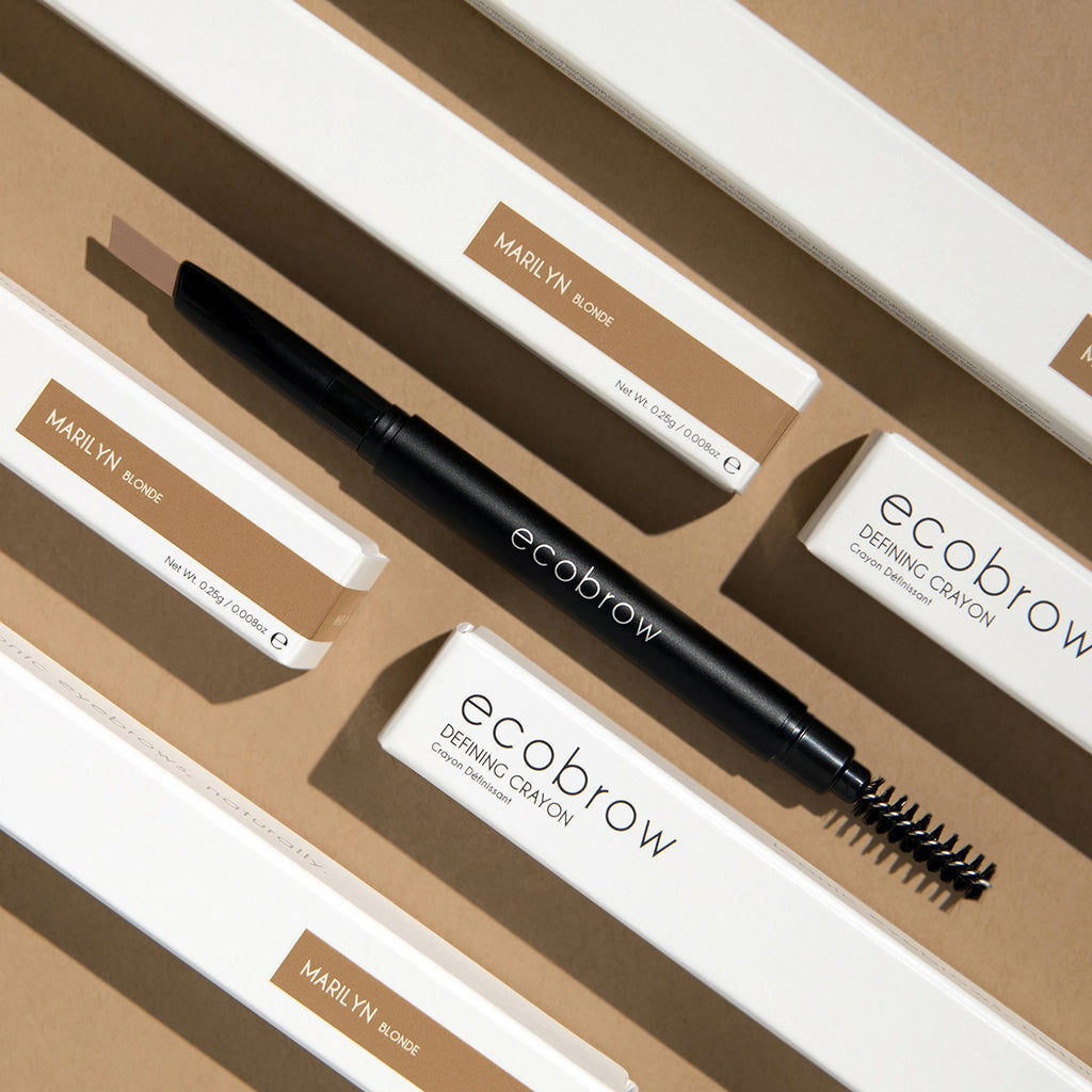 Using the EcoBrow Defining Brush, lightly dab the angle side of the brush with wax and apply onto brows using short hair-like strokes. Apply more as needed. Then use the spooley side to brush brows upward and blend wax perfectly.