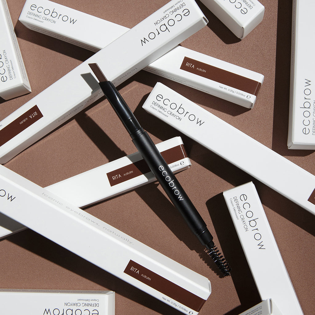 Using the EcoBrow Defining Brush, lightly dab the angle side of the brush with wax and apply onto brows using short hair-like strokes. Apply more as needed. Then use the spooley side to brush brows upward and blend wax perfectly.